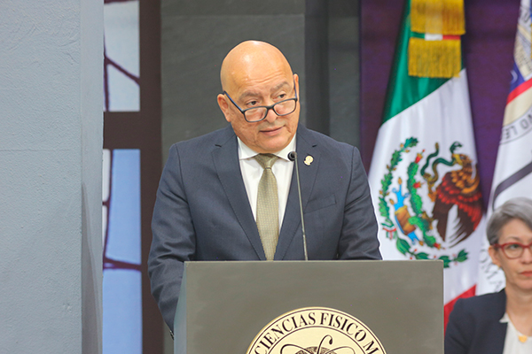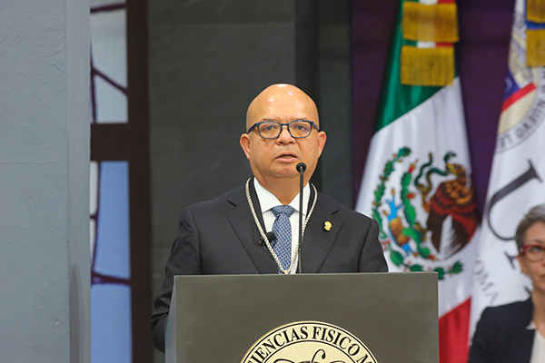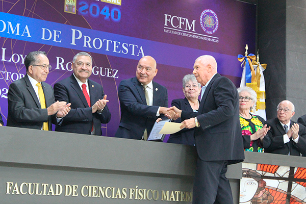 La ceremonia se realizó en el patio central de la Facultad de Ciencias Físico Matemáticas, en presencia de la comunidad universitaria, autoridades y miembros de la Honorable Junta de Gobierno de la UANL.
