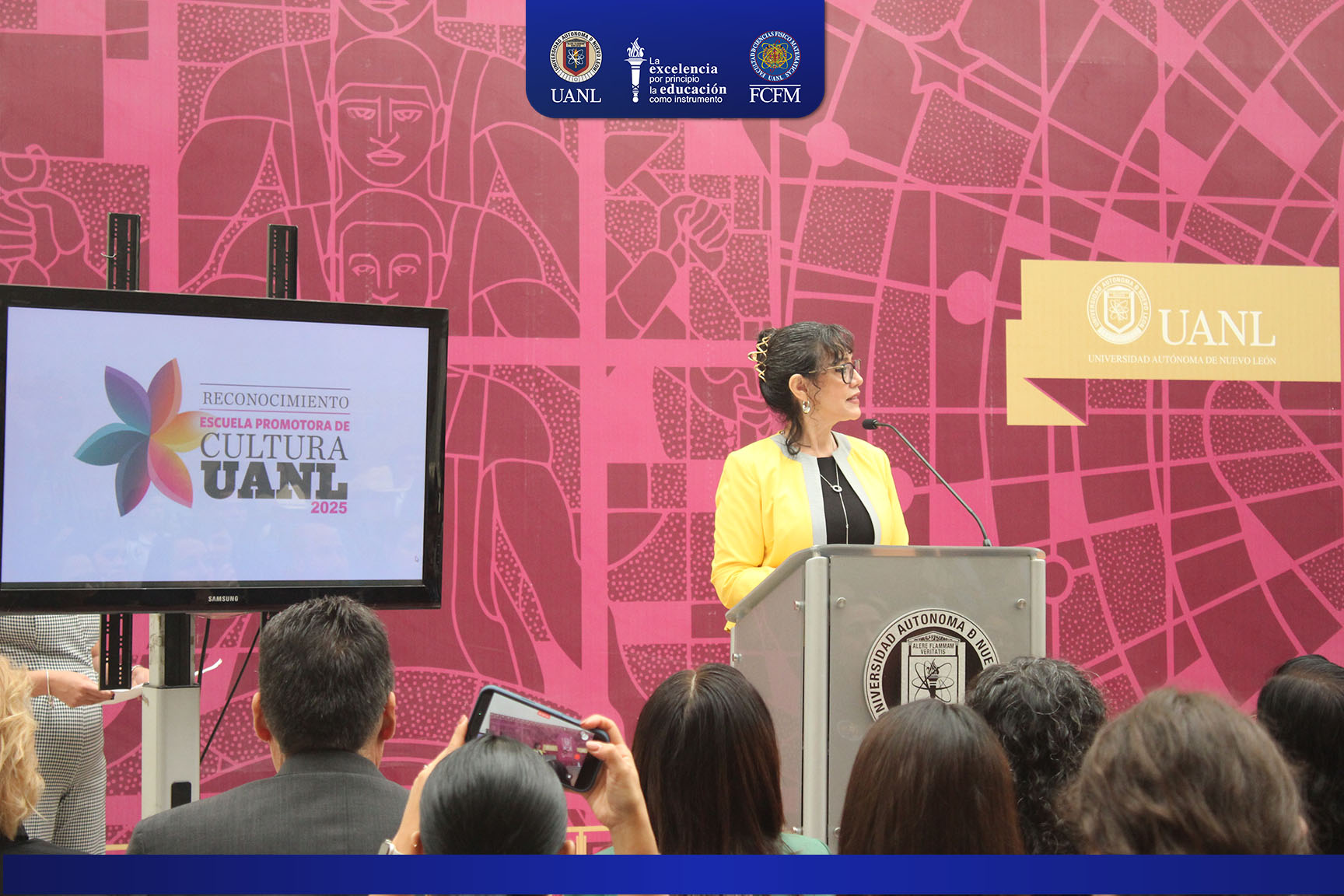 La Facultad de Ciencias Físico Matemáticas de la Universidad Autónoma de Nuevo León fue reconocida como “Escuela Promotora de Cultura 2025”, distinción otorgada a las dependencias universitarias que destacan por su compromiso con la difusión artística, el fortalecimiento de la identidad institucional y la formación integral de sus estudiantes.